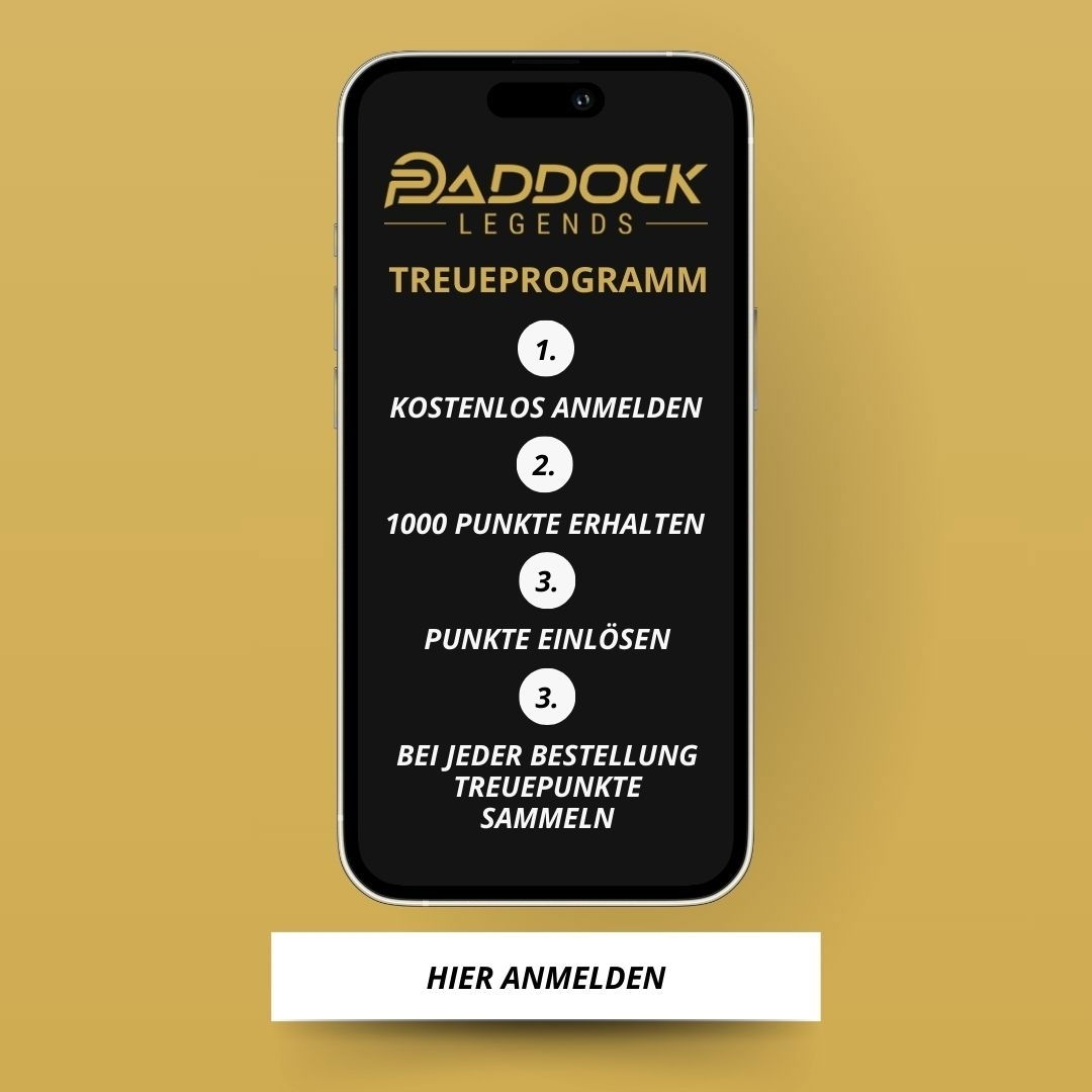 200,00 €200 € WertgutscheinRegistriere Dich für das Paddock Legends Treueprogramm und profitiere von exklusiven Vorteilen. Sammle bei jedem Einkauf Punkte und tausche sie gegen Rabatte ein.